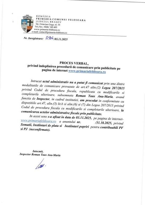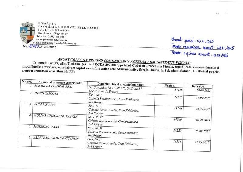 Anunt colectiv privind comunicarea actelor administrativ fiscale-03.11.2025