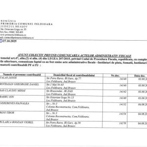 Anunt colectiv privind comunicarea actelor administrativ fiscale 28.10.2025