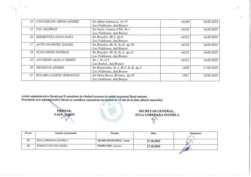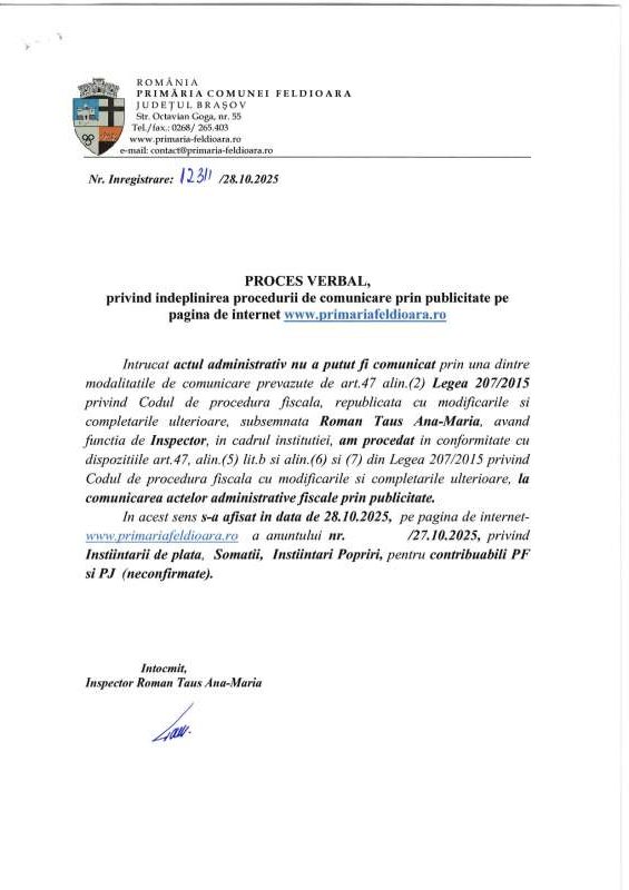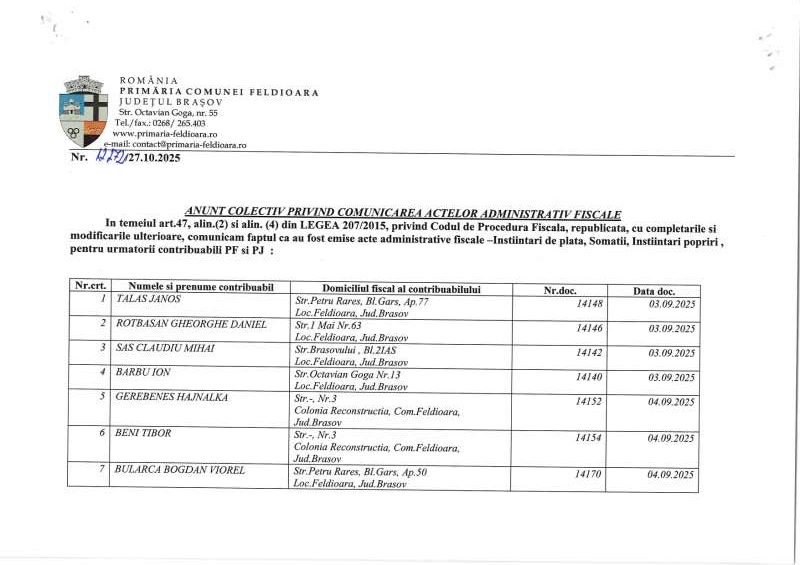 Anunt colectiv privind comunicarea actelor administrativ fiscale 28.10.2025